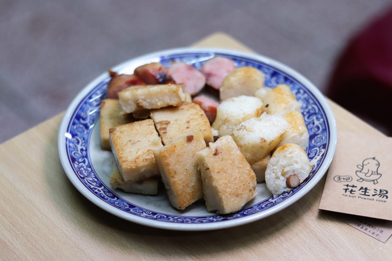 這算是中和吃甜食用的小點心吧,有香腸、米腸及煎菜頭粿,口味上雖然不是到很特別,但是這餐點滿足了吃太多甜食就會想吃一點鹹食的慾望。可以搭配醬油膏、辣椒醬一同食用味道會更豐富唷!