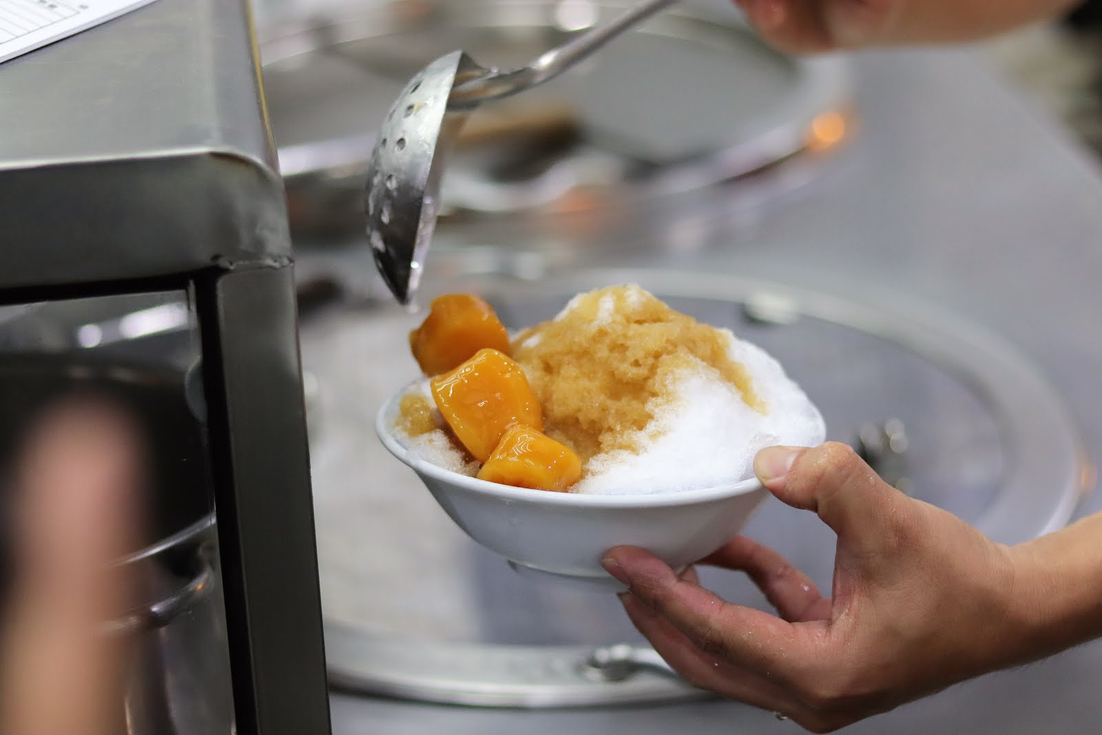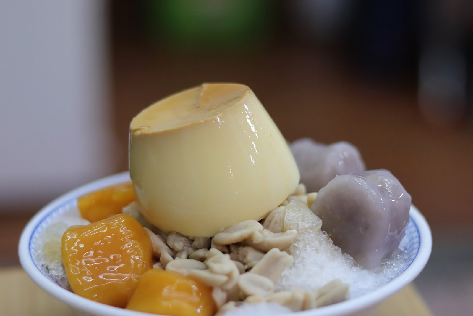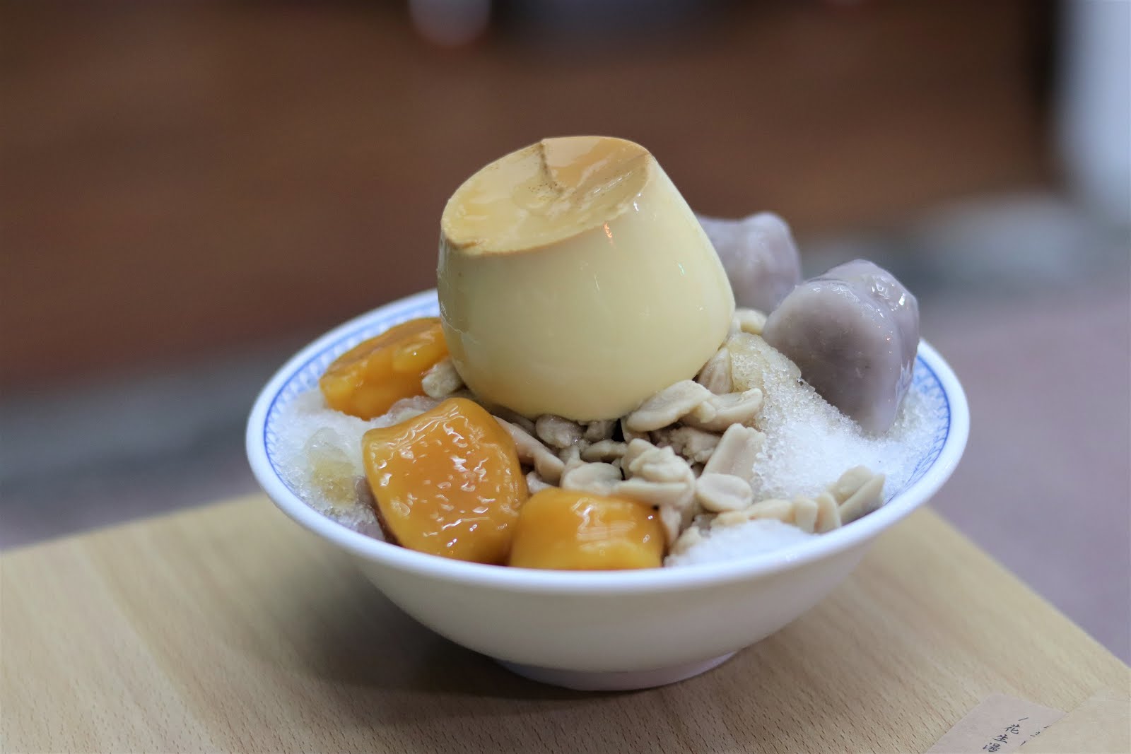 目前還算是隱藏菜單,雖然菜單尚未更新不過到現場也是可以點的到的,雪白的剉冰淋上軟綿的花生仁、大到不行芋圓以及口感很香濃綿密的雞蛋布丁,整個滿滿的幸福感想噴泉一樣湧上來!